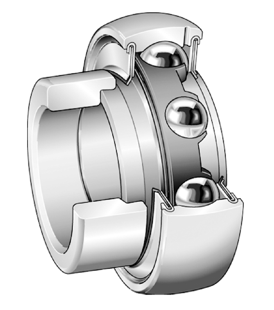 Die Außenring-Mantelfläche ist sphärisch oder zylindrisch. In Verbindung mit einem passenden Gehäuse ermöglicht die sphärische Mantelfläche den Ausgleich von Fluchtungsfehlern der Welle. Im Gegensatz zu den meisten anderen Lagerbauarten wird der Innenring auf der Welle nicht über eine genaue Passung gehalten, sondern über Exzenter oder Madenschrauben geklemmt. Dies ermöglicht den Einsatz einfacher gezogener Wellen.