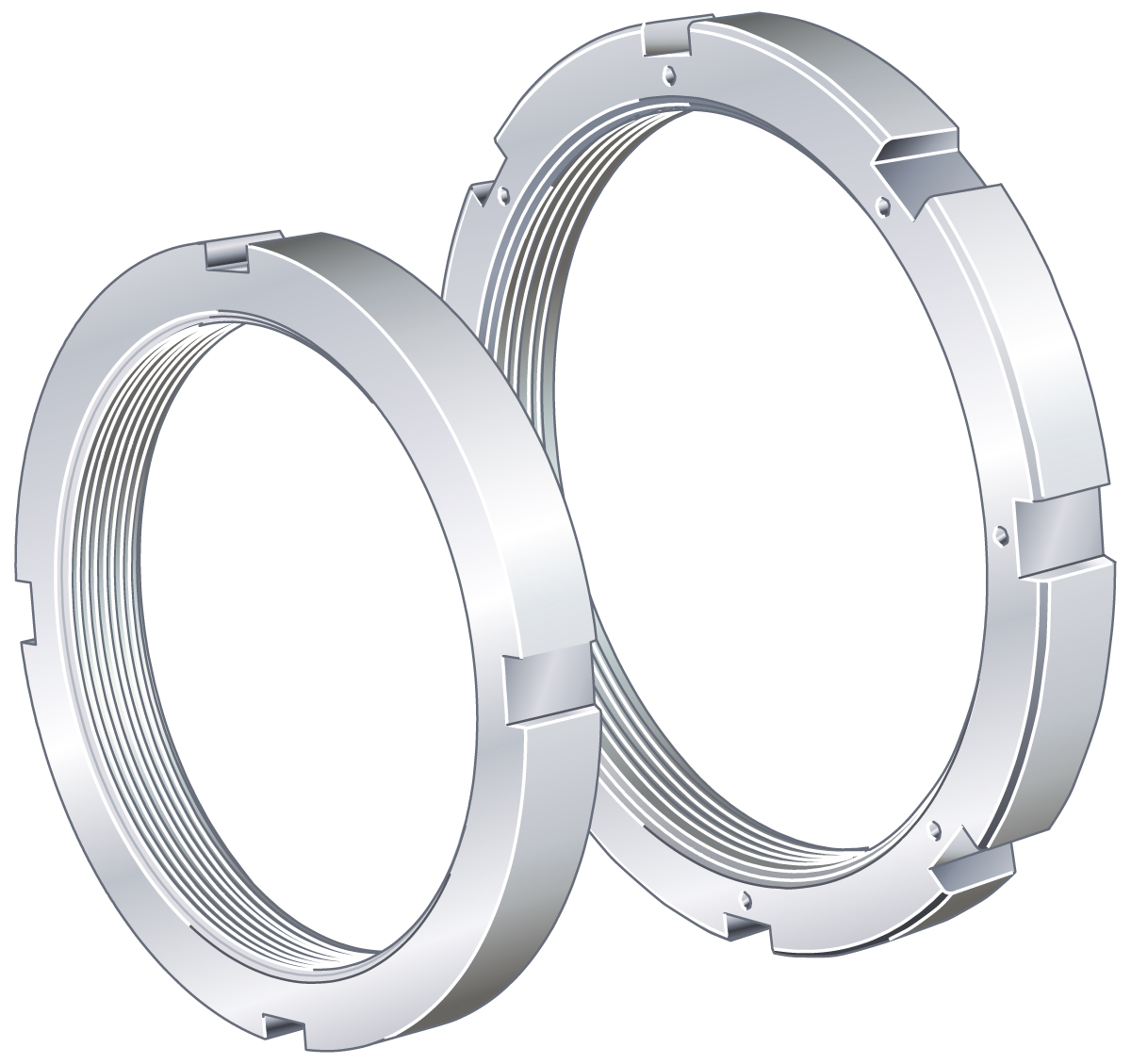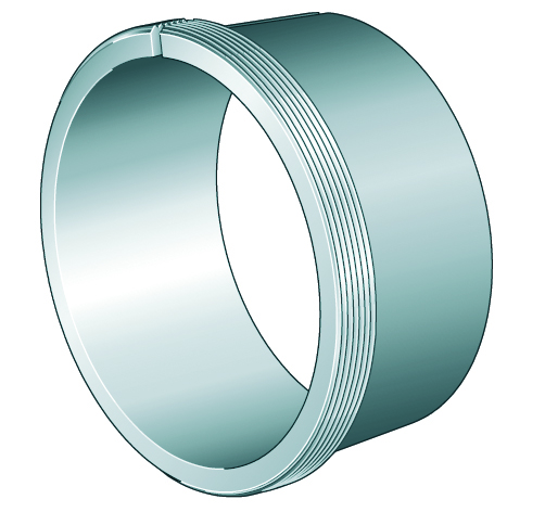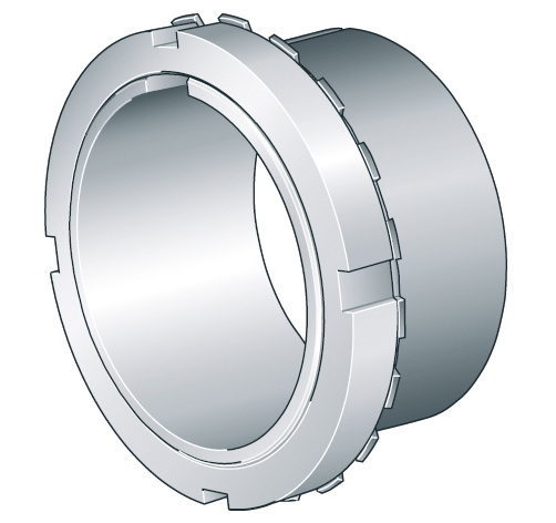 Mit Nutmuttern werden Lager auf Wellen oder Spannhülsen fixiert. Gleichzeitig erleichtern sie die Montage der Lager mit kegeligem Wellensitz sowie den Ein- und Ausbau der Lager auf Abziehhülsen.