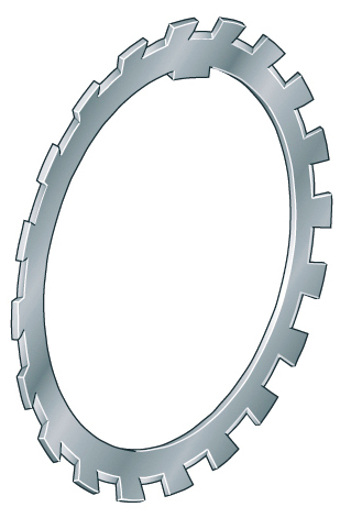 Sicherungsbleche sind einfache, zuverlässige Elemente zur Sicherung kleinerer Nutmuttern. Sie haben einen inneren und mehrere äußere Lappen, die gleichmäßig am Umfang verteilt sind. Der innere Lappen greift in die Nut der Spannhülse oder der Welle, einer der äußeren wird zur Sicherung in eine Nut in der Mutter gebogen.