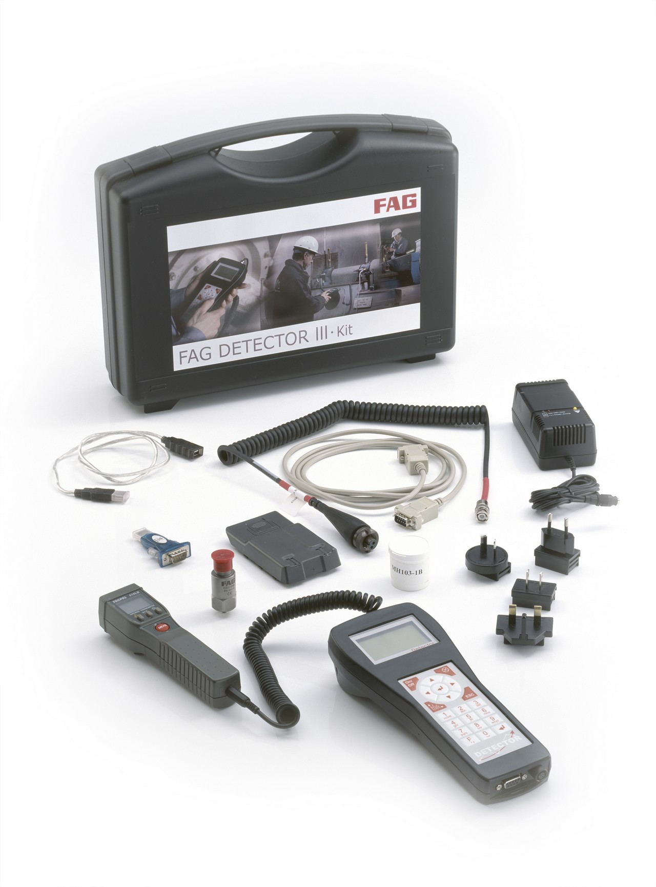 Der FAG Detector III ist ein Offline Schwingungsüberwachungssystem, das anhand verschiedener Sensoren Schwingungen, Temperaturen und Drehzahlen einer Maschine aufzeichnen kann. Dies ermöglicht die frühzeitige Erkennung von Unwuchten, Ausrichtfehlern, Wälzlager- und Getriebeschäden.